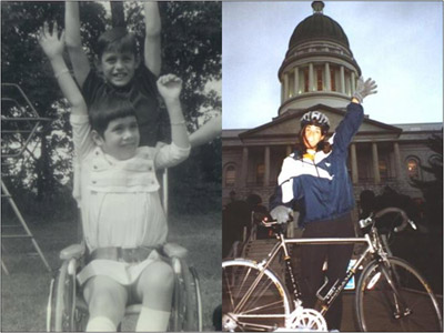 After many years of occupational, speech and physical therapy, and brain surgery at 16, she made it through school, went on to college and developed a strong interest in cycling. The memory of being in a wheelchair on her sixth birthday motivated her to be as physically active as possible. It opened up a whole new world to her. Six years after college she took part in her first organized event, the Paralympic torch relay. She always wanted to raise awareness of brain injuries, improve recovery for survivors, and inspire them to a meaningful life. In 2001, she realized her dream, and staged the first B.I.G. Ride from Morro Bay, CA over 4,000 miles to Augusta, ME. She completed three more rides in 2003, 2005, and 2007. Unfortunately, in 2007 her life was taken in a tragic accident. She paid the ultimate price accomplishing her mission. Her inspiration lives on through the B.I.G. Ride.